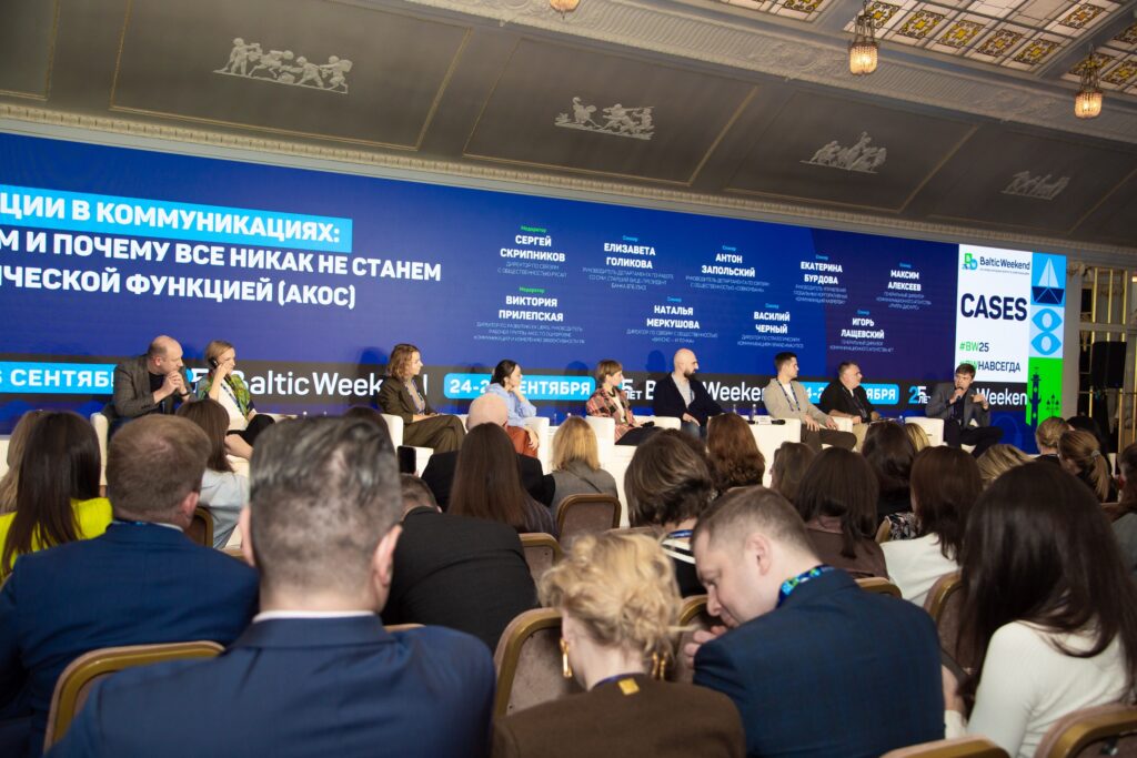 На одной площадке прозвучали разные точки зрения: СЕО рассуждали о роли коммуникации в компании, губернатор Курской области Александр Хинштейн по видеосвязи рассказал о диалоге с обществом в условиях нестабильности, а юная певица и блогер Светлана Чертищева (Betsy Girl), автор трека «СИГМА БОЙ», показала, как молодежь через музыку и цифровые платформы мгновенно попадает в тренды. Такой спектр тем и участников подтвердил уникальность Baltic Weekend как главной дискуссионной площадки отрасли.