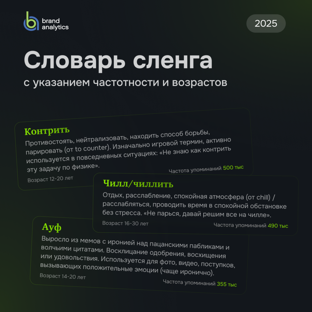Поколенческий разрыв — это не миф, а реальность. Пока зумеры укрепляются на рынке труда, альфа-поколение уже формирует новые языковые тренды. Brand Analytics представляет Словарь сленга 2025 года, основанный на частоте использования слов в социальных медиа.