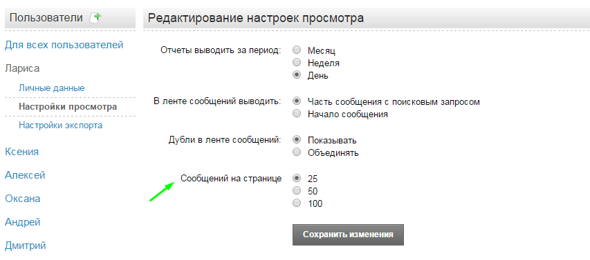 Во-первых, появились возможности гибкой настройки просмотра – теперь каждый пользователь системы может дозировать количество сообщений на странице, отображаемое по умолчанию.