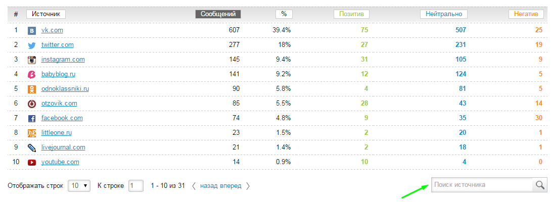 Аналогичная функция реализована в отчете География. Чтобы быстро найти сообщения из определенной страны, региона или города, достаточно ввести название интересующего географического объекта в окне поиска под соответствующей таблицей.
