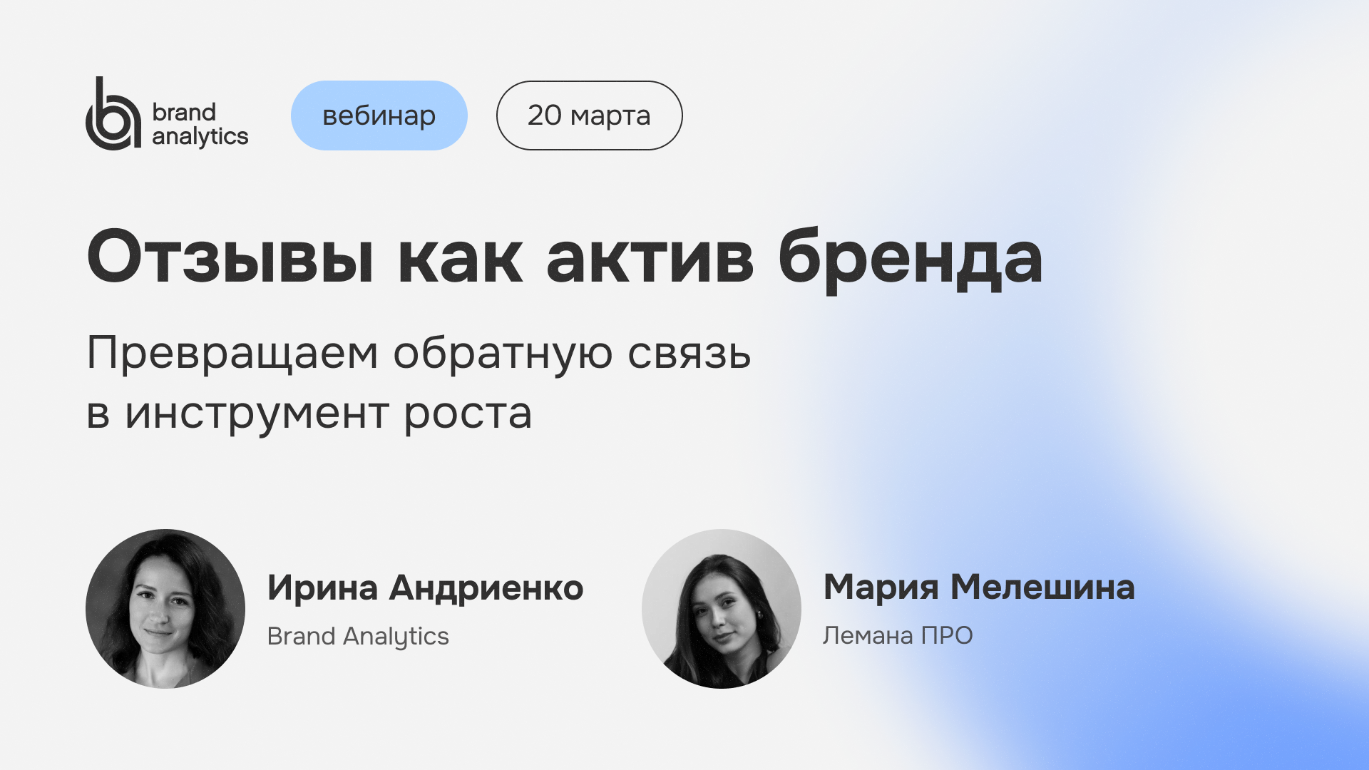 Регистрируйтесь и подключайтесь — поговорим, как строить сильный бренд, улучшать продукт и точечные коммуникации на основе обратной связи. Расскажем, как с помощью системы аналитики соцмедиа и СМИ Brand Analytics собрать пазл из отзывов в целостную картину и понять, что действительно ведёт клиентов к покупке.