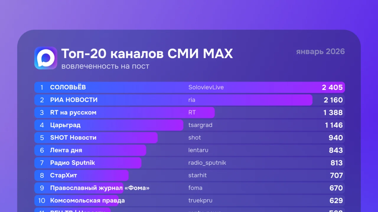 Brand Analytics представляет ежемесячный мониторинг российских медиа в национальном мессенджере MAX. Январь подтвердил тренд на рост активности: аудитория взаимодействует с контентом всё активнее. Представляем рейтинг, составленный по ключевым метрикам вовлеченности.